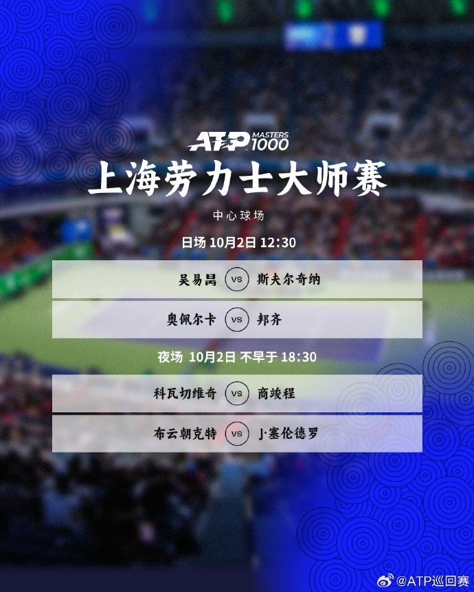 首页 > 新闻 > 上海大師賽今日賽程:吳易昺準時出門,商竣程和小布也不甘示弱依次登場