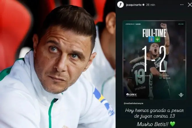 這場比賽顯然讓很多人感到憤怒,尤其是貝蒂斯的名宿華金,他在Instagram上發文表示:“今天我們明明是對著13個人在比賽,但依然贏了!”可以想象,這位老將對於裁判的判罰可真是怨聲載道啊。為了不讓自己再次承受“爭議裁判”帶來的不適,他在發文數小時後,迅速刪除了這條動態。看來,華金知道自己作為俱樂部的一員,發這樣的脾氣還是稍顯衝動。