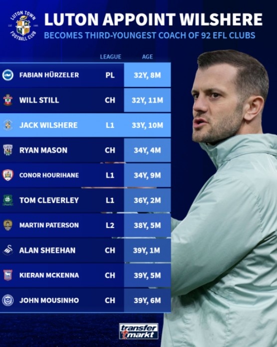 在足球的世界裏,年齡往往並不是能力的唯一標準。最新的數據顯示,英格蘭前四級別聯賽的主教練們中,對年輕的執教者們來說,機會正如旭日東升。盧頓的領軍人物威爾希爾,以33歲10個月的年紀,榮登年輕教練的榜單第三位,給這個充滿激情的競技場帶來了新的活力。